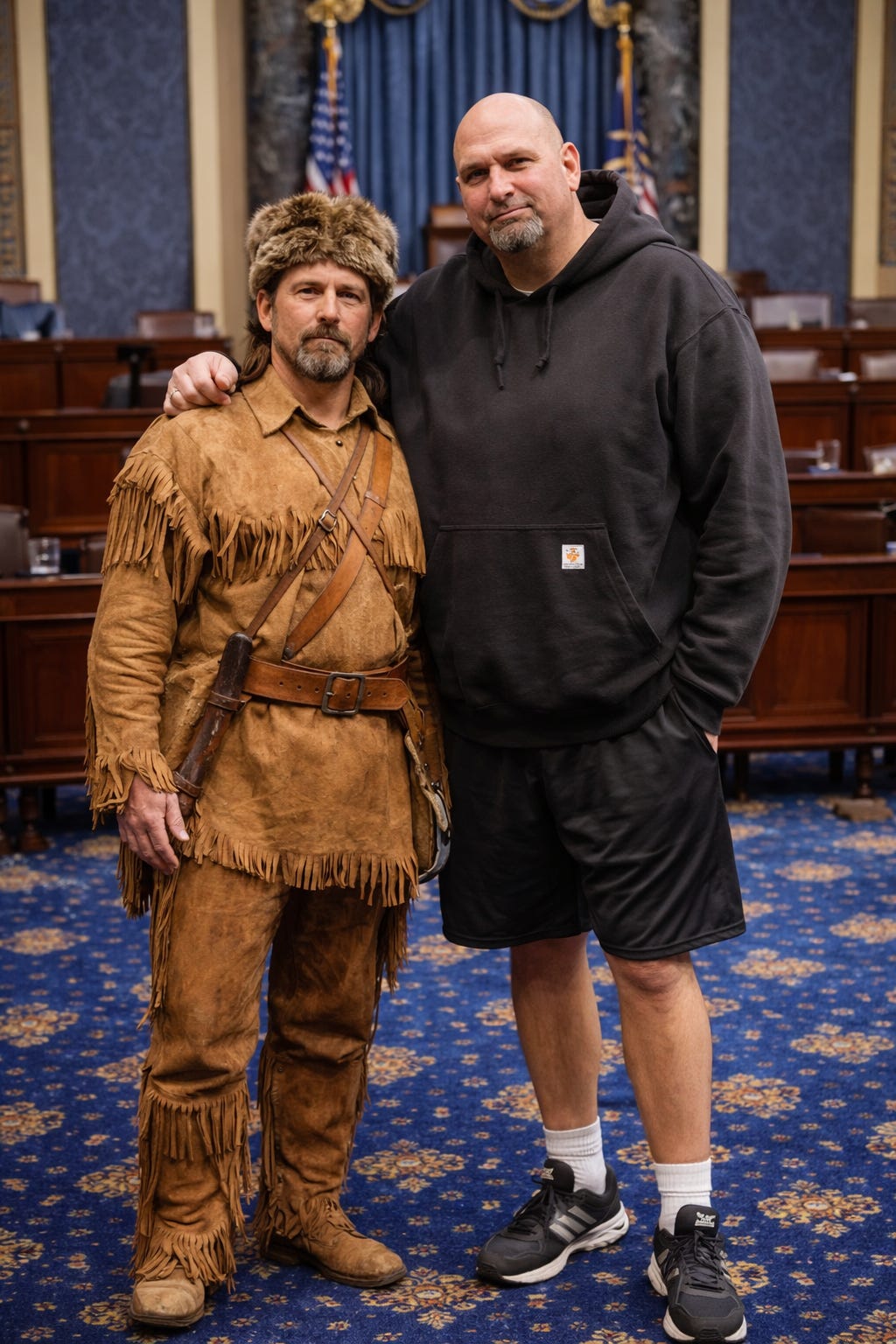 Crockett broke the rules for expected attire, refusing to don frilly shirts, top coats and knickers in favor of buckskin pants and jackets, and possibly a raccoon-skin hat. Fetterman prefers hoodies and athletic shorts to the button-down shirts and pin-striped suits — but we digress.